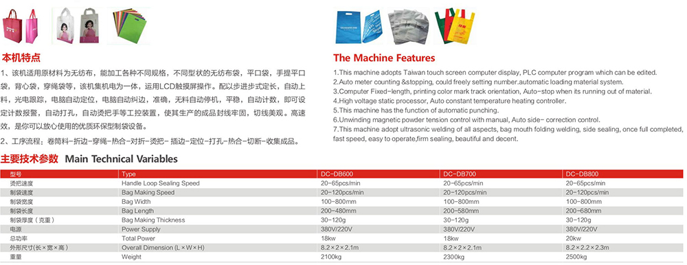 DC-DB600-800無紡布平口燙把一體制袋機(jī)